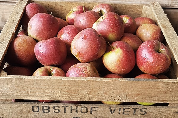Bei uns bekommt ihr mit großer Sicherheit euren Lieblingsapfel, denn der Apfel ist unsere Hauptkultur. Knackig, süß oder sauer, aromatisch und frisch. Mit über 25 moderne Apfelsorten habt ihr bei uns eine riesige Auswahl und für jeden Geschmack ist was dabei. Zudem unterhalten wir eine Apfelanlage mit 30 besonderen alten Apfel- und Birnensorten aus dem wir jedes Jahr einen leckeren Apfelsaft pressen. Dieser trägt den passenden Namen „Opas Apfelgarten“ und ist im Hofladen erhältlich. Gerne könnt ihr uns rechtzeitig im Juli ansprechen und wir ernten euch eure Apfelsorte aus eurer Kindheit oder wie ihr sie noch von Oma und Opa kennt, wie zum Beispiel den Jakob Fischer, Ingrid Marie, Ontario und weitere.