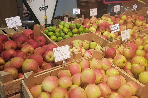 Santana, Holsteiner Cox, Gala, Cox Orange, Elstar, Fuji,