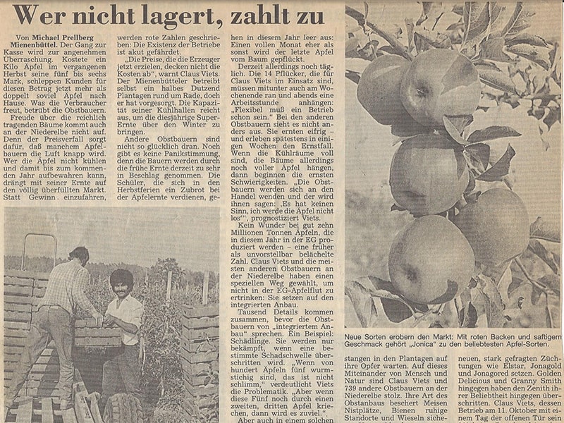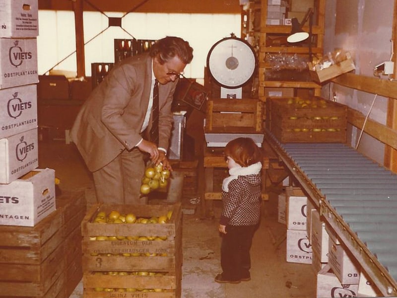 Als Heinz Viets den Betrieb dann nach dem Krieg von seinem Vater Otto übernahm, erkannte er, dass der Obstanbau dem Betrieb die Zukunft wies. Jeden Morgen machte Heinz sich dann mit seinem alten Deutz auf dem Weg von Jork nach Wenzendorf, um dort sein Obst direkt an der B3 zu verkaufen.