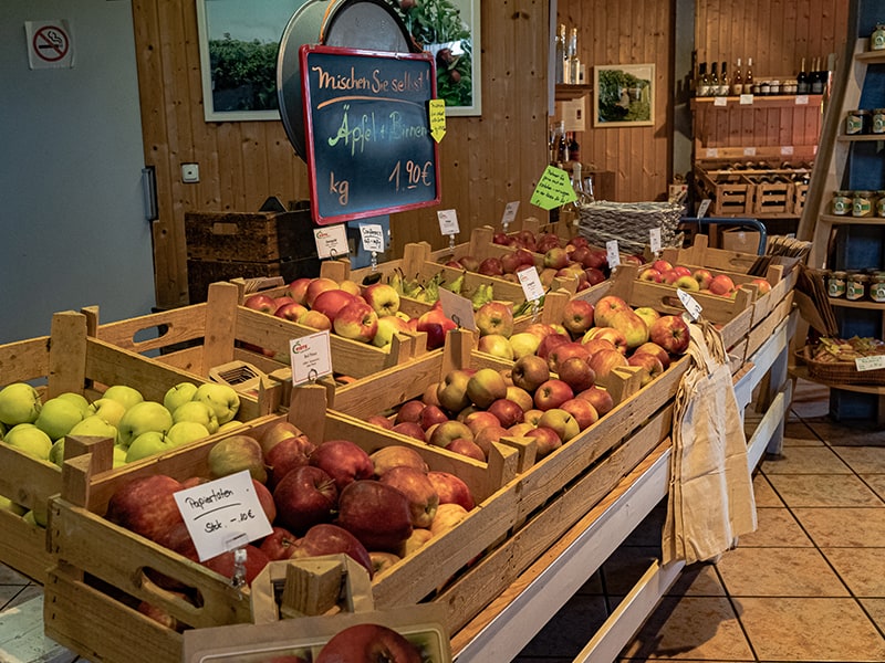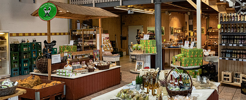 Kommt vorbei: in unserem 300m² großen, zweigeschossigen Hofladen im skandinavischen Stil bekommt ihr nicht nur die große Vielfalt von unserem frischen Obst, sondern auch die vielen anderen köstlichen, regionalen und skandinavischen Produkte präsentiert.
